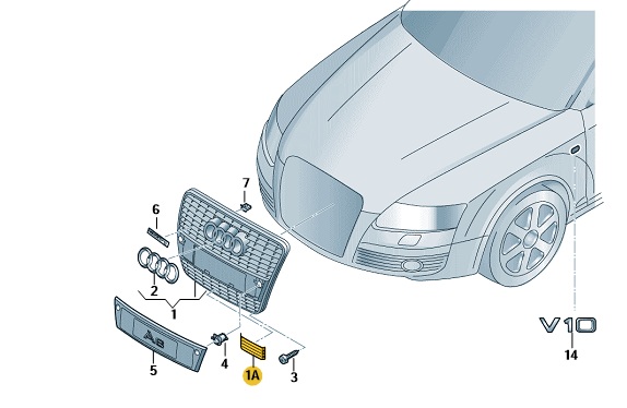 Weiterführende Links zu "Original Abdeckung Kühlergrill schwarz Blende Audi A6 4F0853631F Y9B Neu"