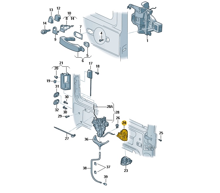 Weiterführende Links zu "Original Drehfallenschloss mit Mikroschalter rechts VW T5 T6 7E0843604D Neu"